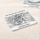 A simple black and white design that will stand out on coffee tables, this wedding save the date coaster features an illustrated hand drawn look. A banner in the middle of the coaster reads "drinks on us" and sits on a lined background. There is space along the top and bottom of the coaster to personalise with your own wedding details.