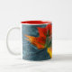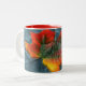 On a rainy autumn day, the pool of water in a fallen maple leaf reflects the tree it came from.