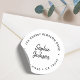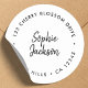 A simple, stylish custom return address label in a contemporary handwritten script font in a modern minialist style on a clean white background with a simple dot symbol feature. The perfect mailing accessory or envelope seal which can easily be personalised with your name and address for a one of a kind design!