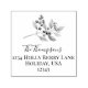 This design features a return address self-inking stamp, with holly berries, greenery, and foliage, a Christmas holiday, an elegant, create-your-own stamp, with a family name and address, and a simple, winter, script design.