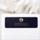 Add a touch of elegance to your mailings with our return address labels for business with a gold seal logo that can be used as is or replaced with your own. Featuring a rich blue leather-like printed background and brushed gold logo emblem this label is perfect for business professionals looking to make a lasting impression. Enhance your professional image with every piece of mail.