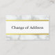 Do you need to make a moving announcement? This enclosure card has a white marble texture look and you can customise the sticker with your name and new address. On the back, there's customisable black text (shown:'Change of Address'). In the middle is a white background for your name and new address.