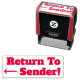This simple rubber stamp design features the message "Return To Sender!", along with an arrow symbol. It could be used to indicate that received mail has been delivered to the wrong address or that the recipient is unknown, and should be returned to the sender.