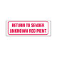 This bold rubber stamp design features the messages "RETURN TO SENDER" and "UNKNOWN RECIPIENT" within a rectangular outline.
