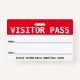 Visitor Pass, Hall Pass, Library Pass, Technician Pass, Hired Help Pass, Temporary Pass or make it your own...the red background colour can be changed to any colour you like...you can either personalise this badge or make it reusable by using a dry & wet erase marker.  Add your logo on the back or front.  This badge will work for any business or school. 📌If you need to customise, please click the "Click to Customise further" or "Customise or Edit Design" button and use our design tool to resize, rotate, change text colour, add text and so much more. ⭐This Product is 100% Customisable. Graphics and / or text can be added, deleted, moved, resized, changed around, rotated, etc... 99% of my designs in my store are done in layers. This makes it easy for you to resize and move the graphics and text around so that it will fit each product perfectly. 📌 (Please be sure to resize, change, add, delete or move any graphics or text if needed before ordering) You can also "TRANSFER DESIGN" on other Zazzle products and adjust the design to fit most of Zazzle items.  (click on the transfer area below) Some of the text graphics have ready to fill in the box(es) or you can Click on the "CUSTOMIZE" button to add, move, delete, resize, background colour or change any of the font or graphics.  The design is made with high resolution vector and/or digital graphics for a professional print. 📌NOTE: (THIS IS A PRINT. All Zazzle product designs are "prints" unless otherwise stated under "About This Product" area) The design will be printed EXACTLY like you see it on the screen and on the product...so please make sure when you do your changes on the resizing of any of the graphics or text that it fits in the areas correctly and that your spelling and wording is how you like it to be in size, colour and font.    If you have any questions about the "DESIGN ONLY" or need help please contact me through my store link: https://www.zazzle.com/store/LetsUDesignIt (Copy and Paste)  I'll be happy to help.  ⭐ ALL OTHER QUESTIONS SUCH AS (shipping, refund, the printing being incorrect, the product itself, etc...) please contact Zazzle or the Maker ⭐DIRECTLY⭐. Thank you for the support and stopping by my store - LetsUDesignIt.  ⭐⭐⭐ ZAZZLE promises 100% satisfaction. If you don't absolutely love it, Zazzle will take it back! ⭐⭐⭐ 1-888-8ZAZZLE (1-888-892-9953) Phone hours: Mon - Fri: 9AM - 5PM PT (12PM - 8PM ET)