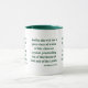 This two-tone mug features a migra extrabold print font with green letters displaying the "Revelation 22:1" KJV bible scripture verse over a white background. This verse is referencing the Book Of Revelation 22nd chapter showing 1st verse in this bible scripture quote theme from the King James bible. The rim & handle are glazed in matching colours available in 11-ounce or 15-ounce sizes microwave and dishwasher safe ceramic construction.