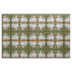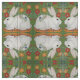 My original, copyrighted white rabbit ceramic tile mural has a green background and bright flowers, and is intriguingly recreated on this fabric.