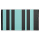 Two looks for the price of one! Dramatic and edgy on one side reverses to fresh and beachy on the other. Aqua teal blue stripes on either a black or white background to suit your changing mood and decor!