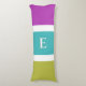 A stylish body pillow with a bright pink, green, blue and white striped design. The stripes are wide on one side of the pillow, narrow on the other side. Personalise with your initial, to appear as a monogram in the centre of the wide-striped side.