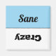 Funny and cute reversible Crazy Sane dishwasher magnet. The "clean" side is a soft blue and says Sane. The "dirty" side is a white and says Crazy. Each side has its own font.