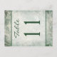 This reversible green and beige floral table number postcard matches the wedding invitation and other items shown below. Stand it on a small easel on each of your tables.