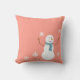 Reversible with one side peach and one side grey background snowman and snowflake design decorative Christmas holiday throw pillow.