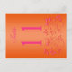 This reversible hot pink and bright orange floral table number postcard matches the wedding invitation and other items shown below. Stand it on a small easel and alternate colours from table to table.