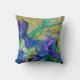 REVERSIBLE PURPLE IRIS, AQUA DRAGONFLY PAINTING Throw Pillow FROM ZAZZLE BY SHARLES ART.