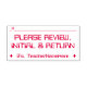 This geeky rubber stamp design features the message "PLEASE REVIEW, INITIAL & RETURN", in addition to a line that a signature or initials could be written above. It also features a customised educator or tutor name. It could perhaps be used by an educator, tutor or teacher to ask a student’s parent(s) or guardian(s) to review the student’s work on a test, an exam, a paper, or some other school assignment.