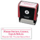 This conservative rubber stamp design features the message "Please Review, Correct, Sign & Return", along with a line that a signature or initials could be written above. It also features a customisable educator name. It might be be used by a tutor, teacher or educator to ask a student’s parent(s) or guardian(s) to review and acknowledge the grade that a student received on an exam, a quiz, a paper, a test, or some other school assignment.