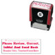 This respectable rubber stamp design features the message "Please Review, Correct, Initial And Send Back", plus a line for a signature or initials to be written above. It also features a customised educator or teacher name. It could perhaps be be used by a teacher, tutor or educator to ask a student’s parent(s) or guardian(s) to review and acknowledge the grade that a student received on a test, a paper, an essay, a quiz, or some other school assignment.