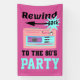 Rewind Back to the 80's, this design features a retro 1980's style in pink and blue with text saying, "Rewind Back to the 80's".