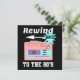 Rewind back to the 80's, this design features a eighties classic pink walkman or cassette player and text saying "Rewind back to the 80's".