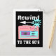 Rewind back to the 80's, this design features a eighties classic pink walkman or cassette player and text saying "Rewind back to the 80's".