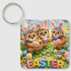 Carry a little bit of Easter fun everywhere you go with this charming keychain from the Rex and hoot series featuring our adorable owl friends dressed as bunnies surrounded by colourful eggs and flowers
