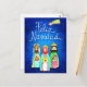 The three wise men Postcard with Feliz Navidad quote. Colourful hand painted illustration postcard to wish Merry Christmas in Spanish.