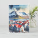 This postcard features a watercolor portrait of Reykjavik, Iceland.