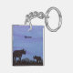 A watercolor painting of two Rhinoceros adorns this customisable keychain!
