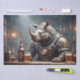 Rhino Warrior Drinking Beer #2 - Decoupage - Tissue Paper