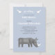 It's a boy! A cute rhino and some birds decorate this blue baby shower design, ready to personalise with your party details.