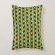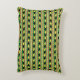 Black and yellow rhinos march across green stripes alternating with loosely “woven” stripes in African colours of red, black and green with yellow accents on this rectangular throw pillow.