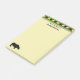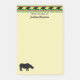 Black and yellow rhinos march across green stripes alternating with loosely “woven” stripes in African colours of red, black and green with yellow accents in the pattern that accents this easy to personalise sticky note pad along with a graphic rhinoceros in silhouette.