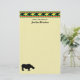 This easy to personalise stationery features a pattern of black and yellow rhinos marching across green stripes alternating with loosely “woven” stripes in African inspired colours of red, black and green with yellow accents.