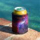 A gorgeous can cooler with a view of the Rho Ophiuchi Cloud Complex taken by the Near-Infrared Camera (NIRCam) of NASA’s James Webb Space Telescope. The Rho Ophiuchi Cloud Complex is the closest star-forming region to Earth. It's a relatively small, quiet stellar nursery, but you’d never know it from Webb’s chaotic close-up. Jets bursting from young stars crisscross the image, impacting the surrounding interstellar gas and lighting up molecular hydrogen, shown in red.