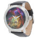 A gorgeous watch with a template for your initials. It's showing the Rho Ophiuchi Cloud Complex taken by the Near-Infrared Camera (NIRCam) of NASA’s James Webb Space Telescope. The Rho Ophiuchi Cloud Complex is the closest star-forming region to Earth. It's a relatively small, quiet stellar nursery, but you’d never know it from Webb’s chaotic close-up. Jets bursting from young stars crisscross the image, impacting the surrounding interstellar gas and lighting up molecular hydrogen, shown in red.