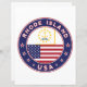 Badge of Rhode Island with flag of Rhode Island and flag of USA colours, rounded shape.