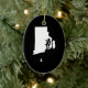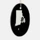 The shape of the state of Rhode Island in black and white. You can change the background colour or add a custom souvenir text message.
