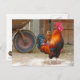 Rhode Island Red Rooster Crowing in Barnyard Postcard