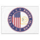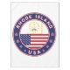 Badge of Rhode Island with flag of Rhode Island and flag of USA colours, rounded shape.