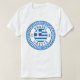 Men's white T-Shirt for the island of Rhodes, Greece with the national flag of Greece inside an Aztec circle design. You can wear this T-Shirt if you're on a trip to Rhodes or to remind you of your vacation. This summer design is also ideal for someone who is from this beautiful Greek island.