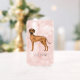 Destei's original cartoon illustration of a cute Rhodesian Ridgeback breed dog. The dog is standing and looking towards the viewer. There is also a personalizable text area for a name or other custom text.