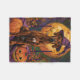 Embrace the Halloween spirit with this enchanting design featuring a cute dog in a witch hat surrounded by carved pumpkins. Perfect for adding a touch of spooky charm to your festive celebrations.