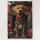 Add some holiday cheer with this charming design featuring a kawaii-style dog in a cosy sweater. Sitting joyfully by a fireplace adorned with stockings, the scene is complete with colourful presents and garlands, bringing warmth and festive vibes. The soft, playful colours capture the cosiness of the holiday season, making it a delightful way to celebrate the holidays with a joyful pup at the heart of the scene.