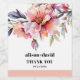 This wedding wine label showcases a beautiful erhododendron branch adorned with peach-pink flowers and greenery. The upper part of the label is adorned with this stunning botanical design, while the names of the couple are elegantly displayed in bold typography, creating a personalized touch. The heartfelt 'Thank You' message is also highlighted in the same eye-catching style. Adding a touch of sophistication, a peach-pink band gracefully goes around the bottom of the label, completing the overall aesthetic.