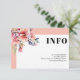 Rhododendron branch with peach pink flowers wedding details enclosure card with QR code. This wedding details card features a clean, elegant design with a white frame and peach pink borders. In the top left corner there is a delicate rhododendron branch with peach-pink blossoms, while the word "INFO" stands out in bold type. The back is a calming peach-pink color and includes a QR code. Guests can scan it to easily access more information—simple, stylish, and friendly for everyone.