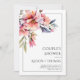 This couple's shower invitation features a rhododendron branch adorned with delicate peach-pink flowers in the upper left corner, framed by a sleek black border. The text is elegantly displayed in decorative typography, while the thin black border enhances the floral design, resulting in a harmonious and attractive presentation for the occasion.
