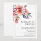 This elegant sophisticated rehearsal dinner invitation features a charming arrangement of rhododenron peach-pink flowers and sage green leaves in the top left corner. The couple's names are presented in decorative and stylish typography. A slender black border elegantly encircles the floral design and the text.