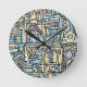 Rhythm In Blue-Funky Clock With Hand Painted Modern Geometric Watercolor Art
