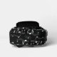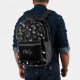 A sleek black backpack comes alive with a dynamic white pattern of musical notes, celebrating the spirit of sound and creativity. With a zippered front pocket and mesh side compartments, the design blends practicality with artistic flair—perfect for those who carry music with them wherever they go.