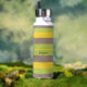 Three-color design with rhythmic stripes. Horizontal lines in three strong colors for your sports water bottle. Add your name or text. This variant is the bright color scheme in brown, yellow and green.